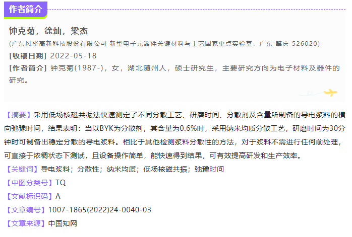 低場核磁共振法測定電子漿料的分散性 來源:本站 時間:2023-02-28 00:00:00