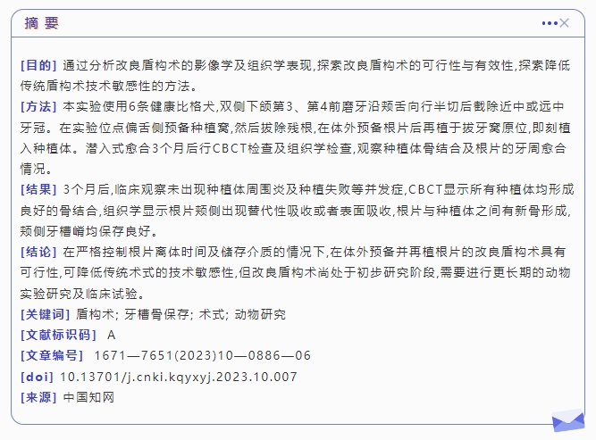 體外預(yù)備根片改良盾構(gòu)術(shù)的動(dòng)物實(shí)驗(yàn)研究