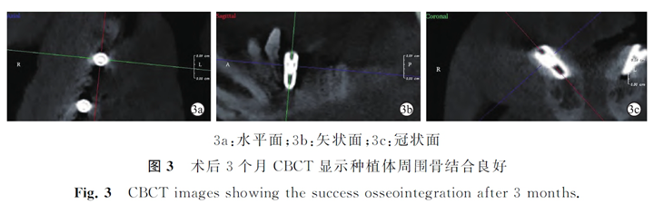 CBCT示所有種植體均與骨組織形成良好的骨結(jié)合(3)。